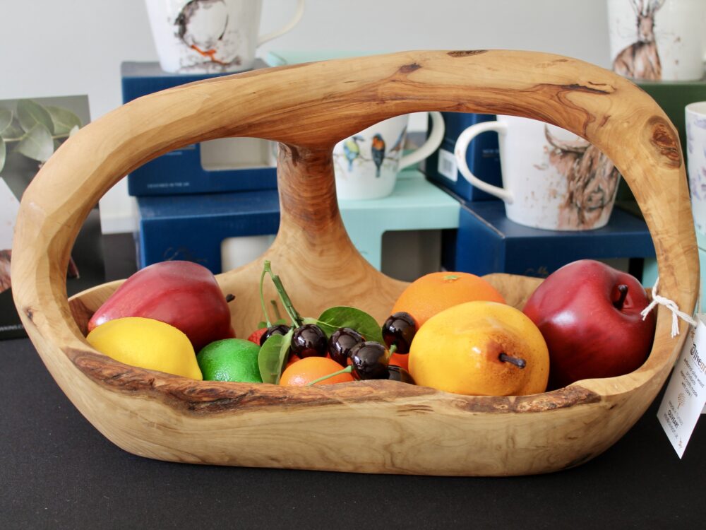 OLIVE WOOD FRUIT BASKET AND HANDLE